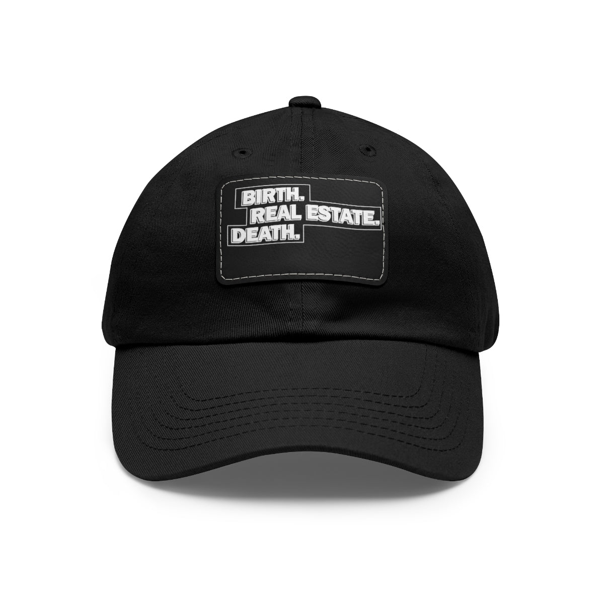 Birth. Real Estate. Death. Hat with Leather Patch