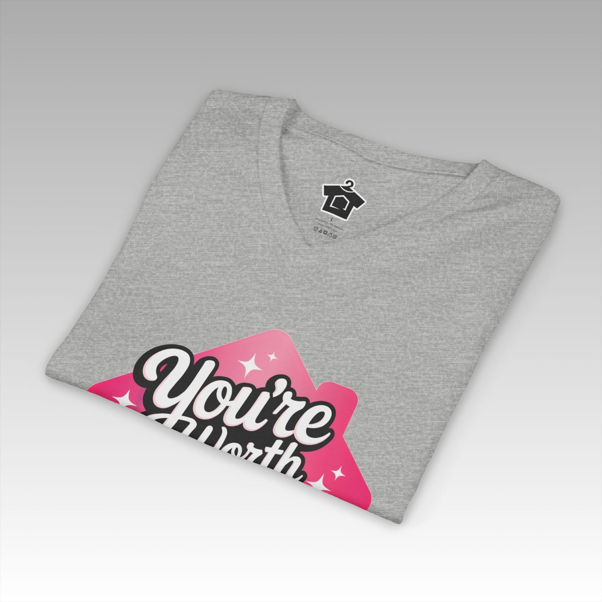 Make a bold statement with the "You're Worth the Closing Costs" V-Neck T-Shirt—because you are worth every penny! Order yours today and wear your worth with pride.