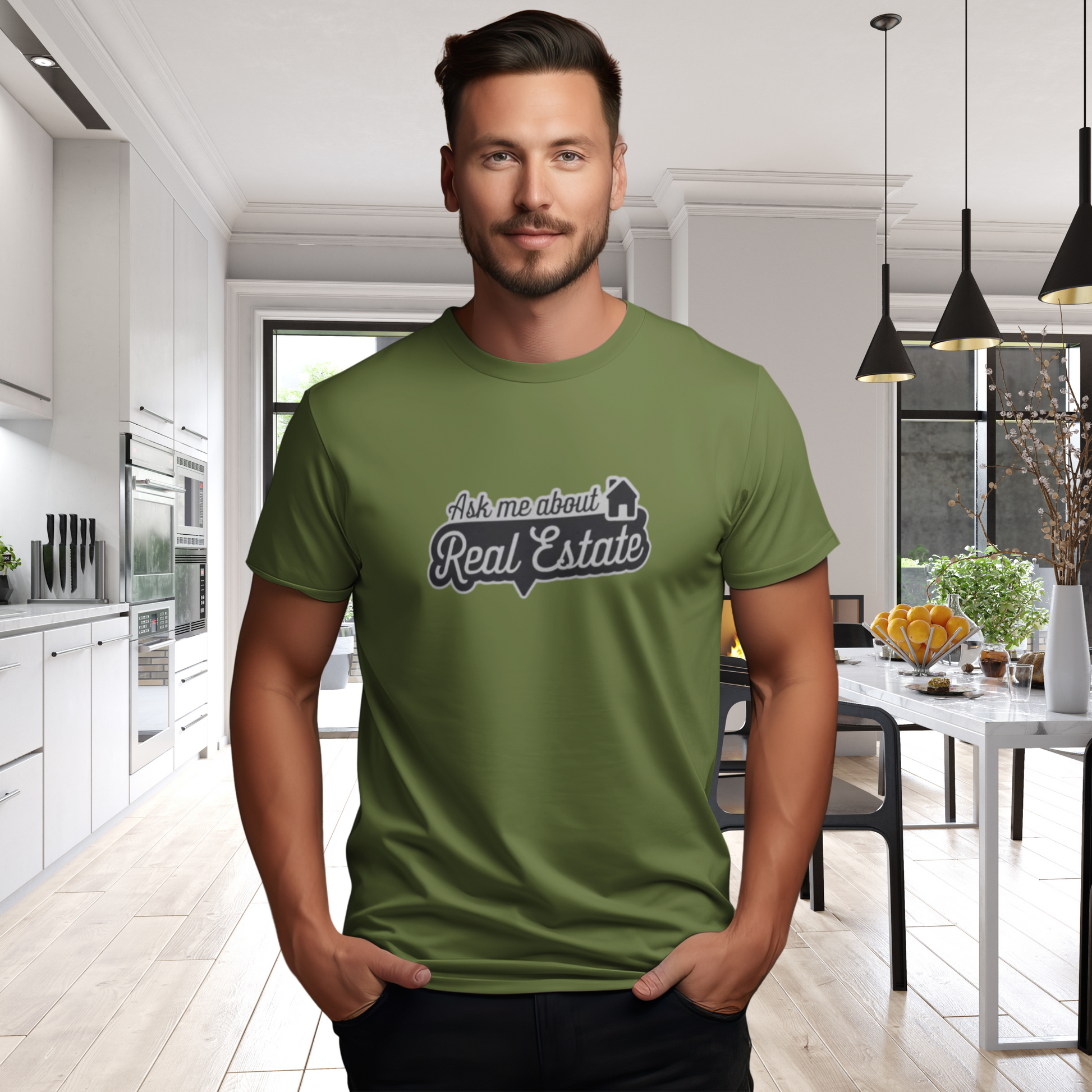 Let your shirt do the talking with this ✨charming✨ "Ask Me About Real Estate" tee! Featuring a trendy cursive font inside a 🗨️ speech bubble and a cute house icon 🏠, this design is perfect for sparking conversations about your passion for real estate. Whether you're networking at an open house, grabbing coffee ☕, or running errands 🛍️, this shirt is a fun and stylish way to advertise your expertise.