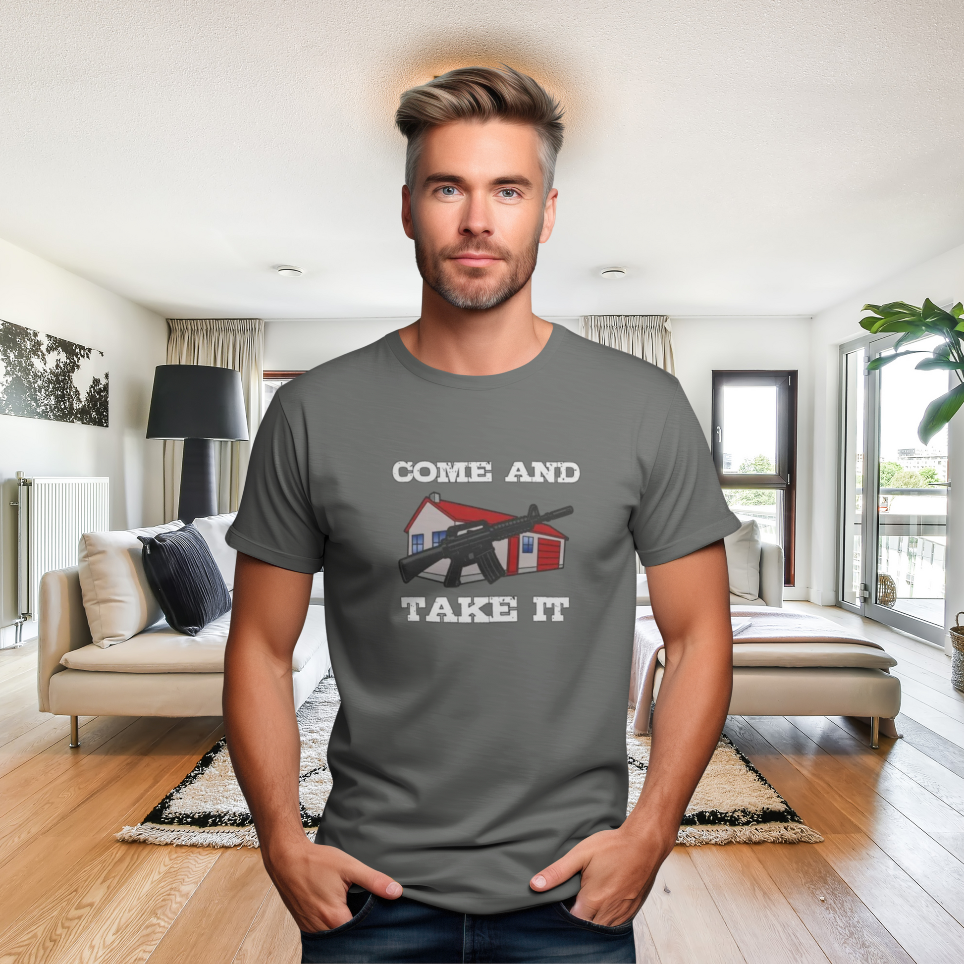 šŸ”„ A bold statement for real estate pros, investors, and homeowners who stand their ground! Inspired by the iconic "Come and Take It" flag, this tee replaces the cannon with a house—because real estate is the ultimate power move. Whether you're fighting for homeownership, defending your turf, or just love a good real estate flex, this shirt makes your stance clear.